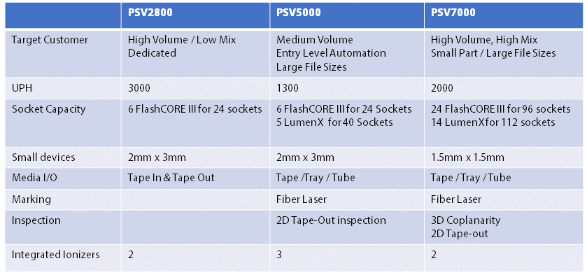 Data I/O PSV family delivers the performance and flexibility to meet your production requirements while delivering the lowest total cost of ownership.